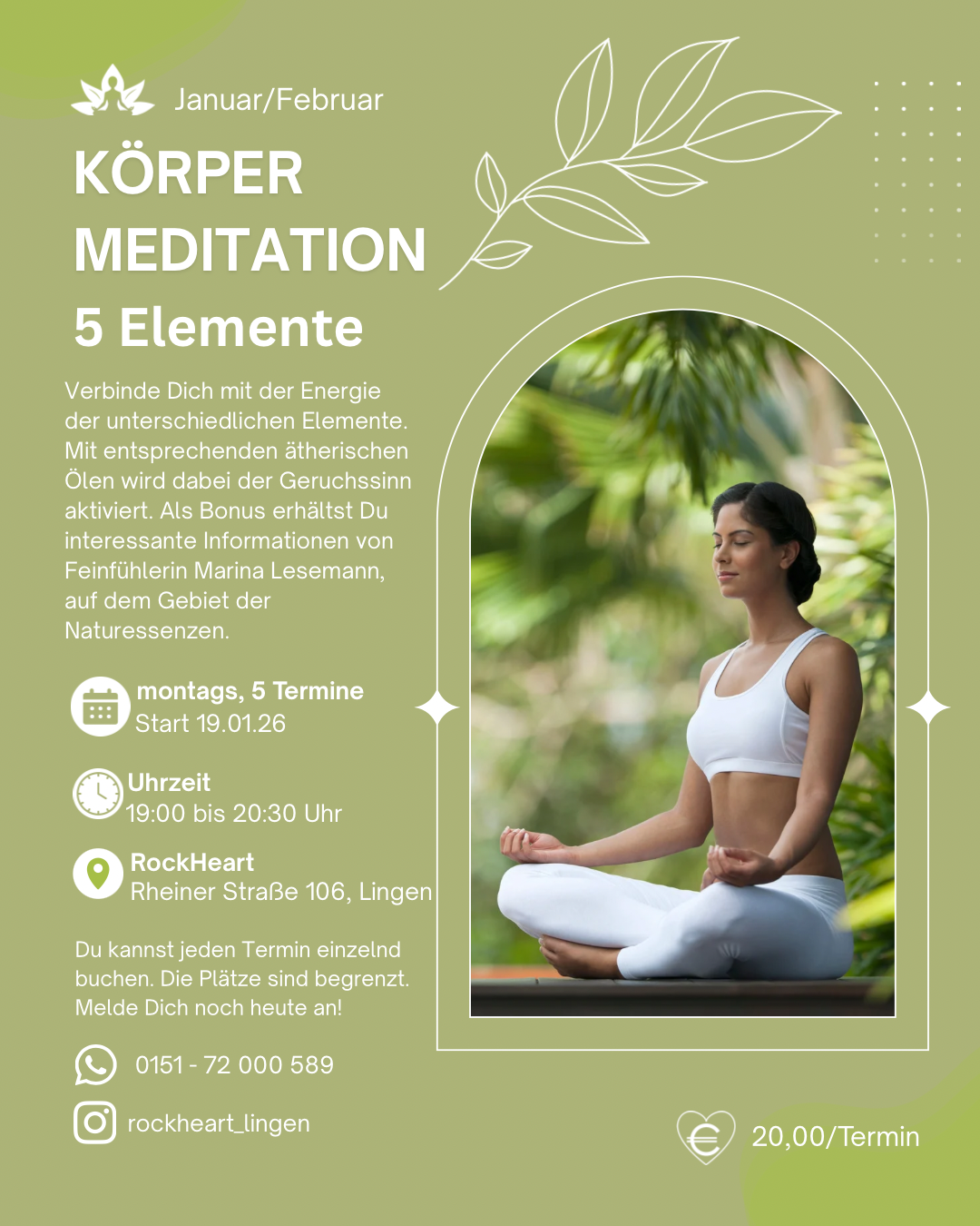 Du kannst jeden Termin einzeln buchen. Die Plätze sind begrenzt.